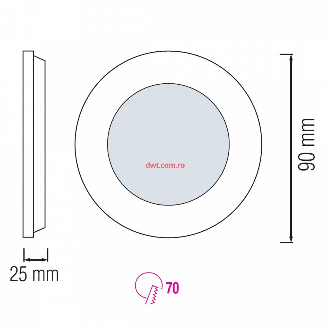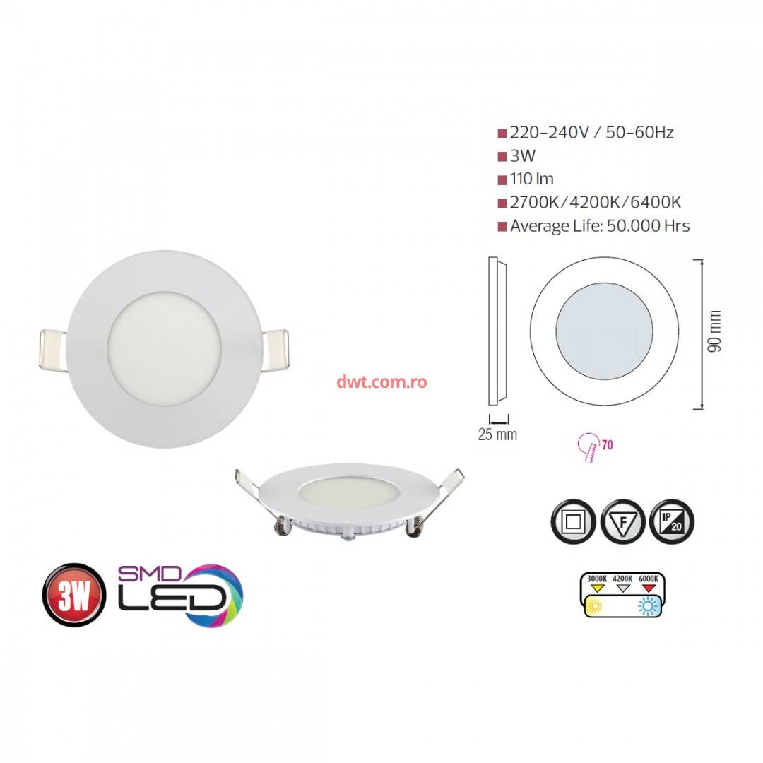 | Comanda instant - Panou Led rotund, Slim-3, putere 3 W, 6400 K, 110 lm
