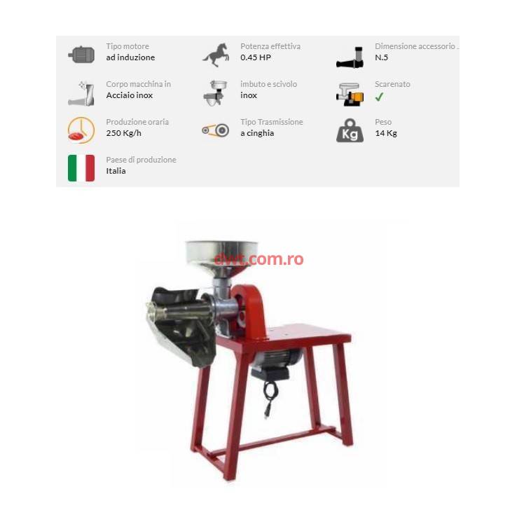 Pavi PAVI-3707/ Storcator electric de rosii Palumbo TS Inox, cu banc de lucru, 337 W, IP54, 250 Kg/h, nr 5 |