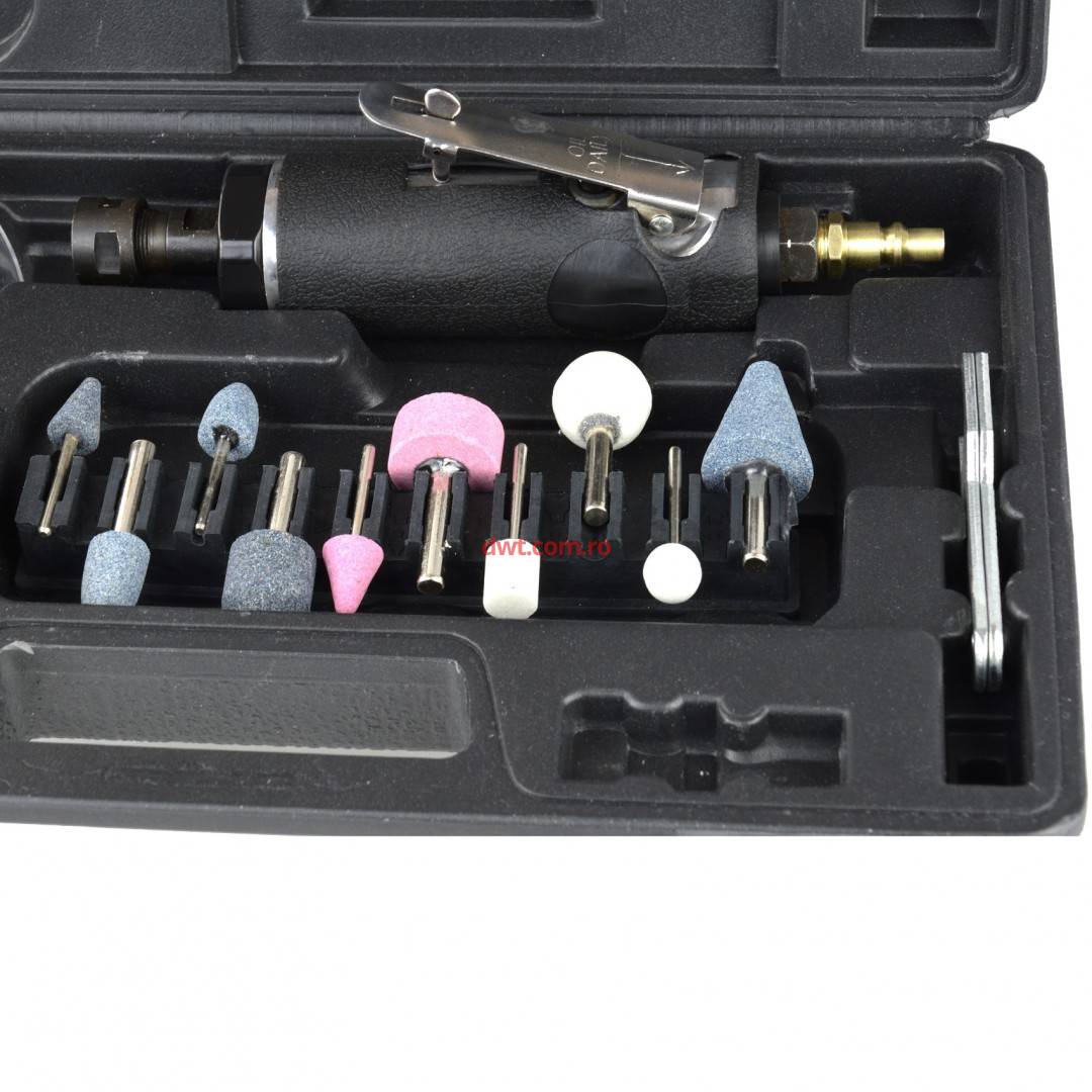 Polizor drept pneumatic Geko G03142, disc 75 mm, accesorii si valiza transport |
