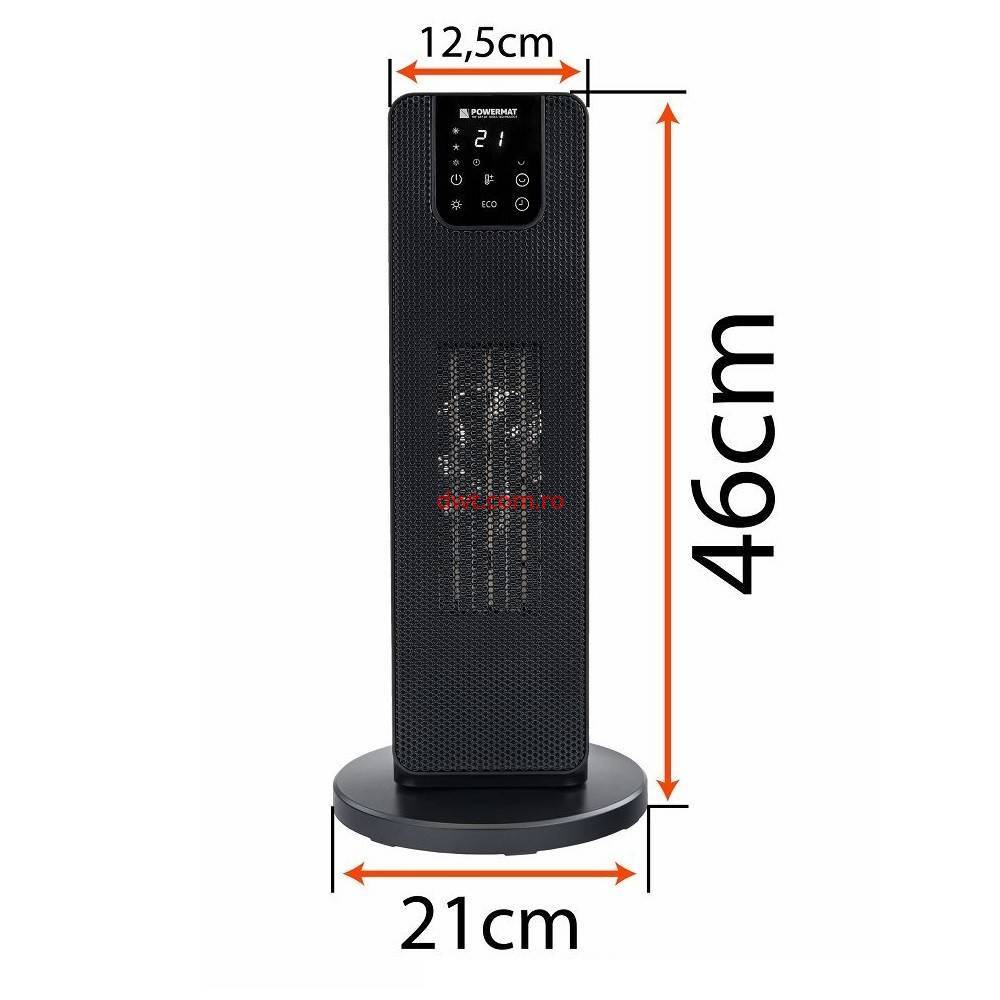Comanda instant - Powermat PM1252 Radiator turn, 2 trepte de putere 1000/2000 W, Telecomanda, Oscilatie, Afisaj LCD