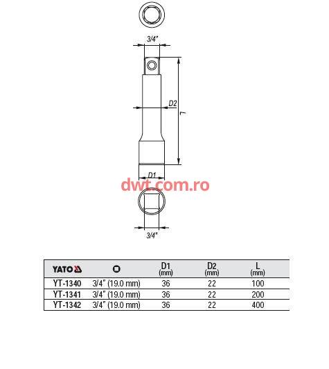 Prelungitor 3/4 x100mm, YT-1340 YATO |