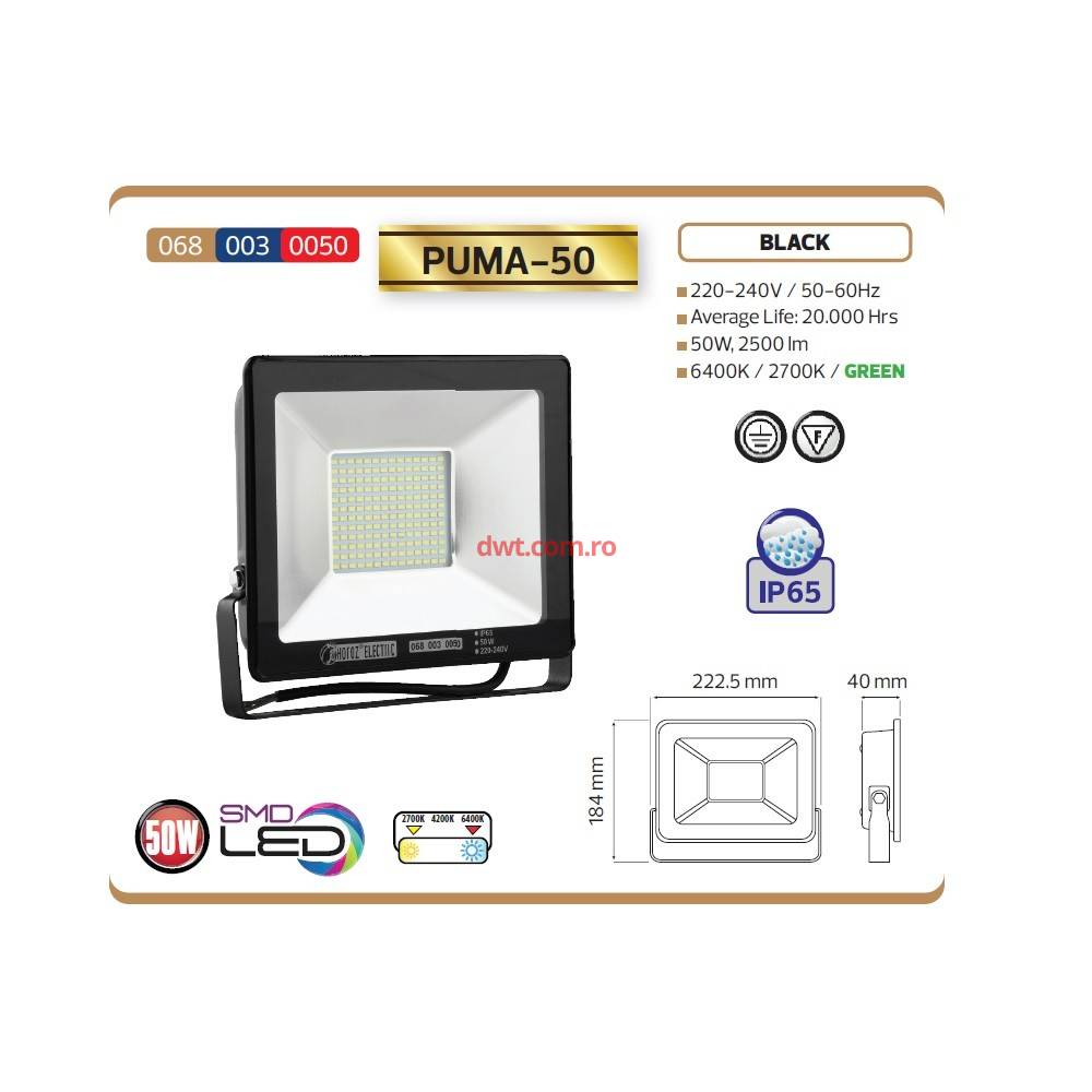 Proiector Led Puma-50, putere 50 W, 2500 lm, IP 65 |
