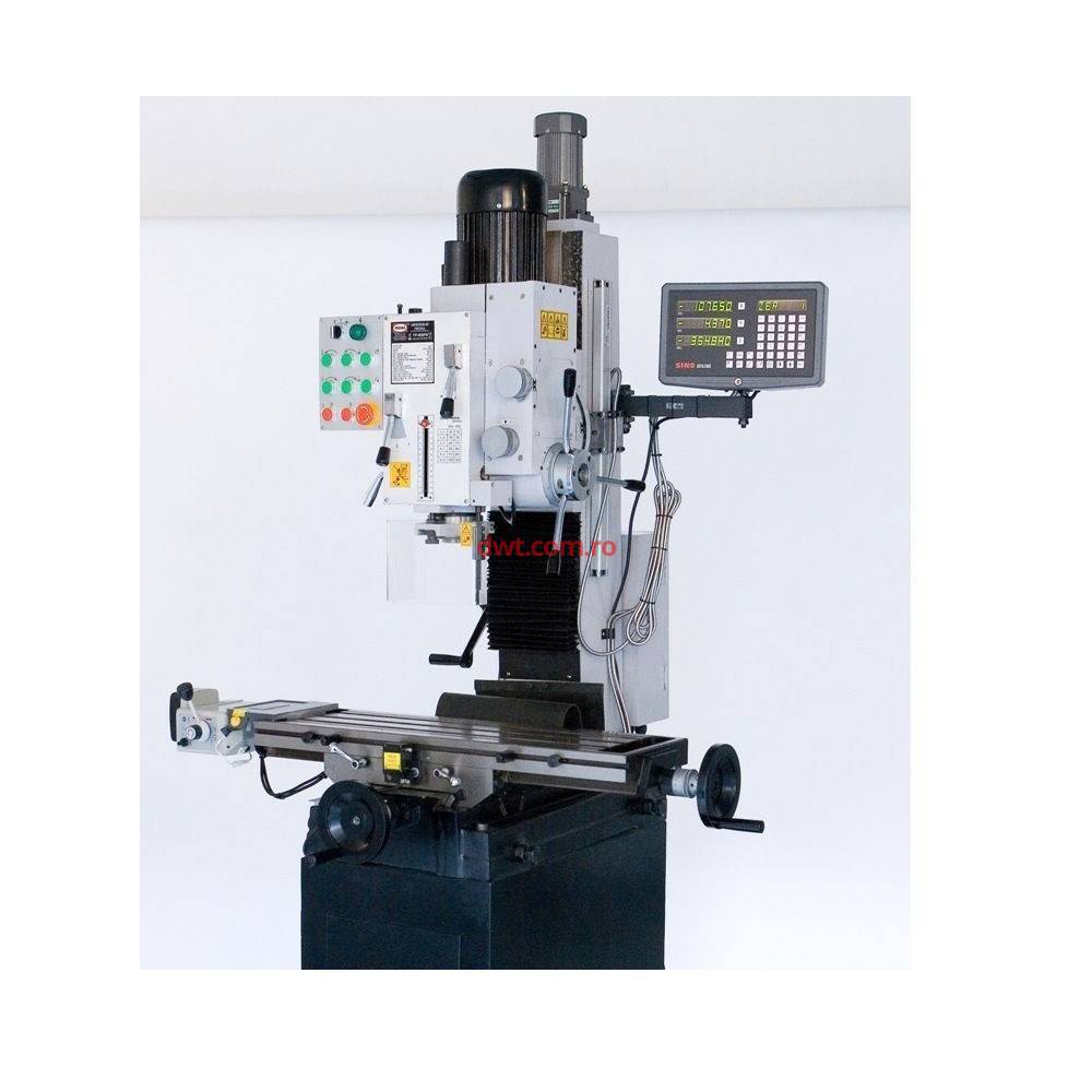 Caracteristici tehnice: Aceste maşini prin posibilităţile sale, înclinarea capului, operaţiuni atât de frezare cât şi de găurire, monitorizarea operaţunilor cu ajutorul afişajelor le recomandă pentru piese unicat şi serie mică, ideale pentru laboratoarele de cercetare aplicată, ateliere de întreținere și mica producție. Diametru maxmim de gaurire 45 mm