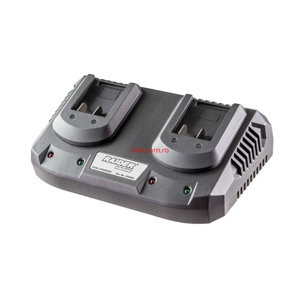 Raider 032603 Incarcator dublu pentru acumulatori scule electrice, Raider 20 V |