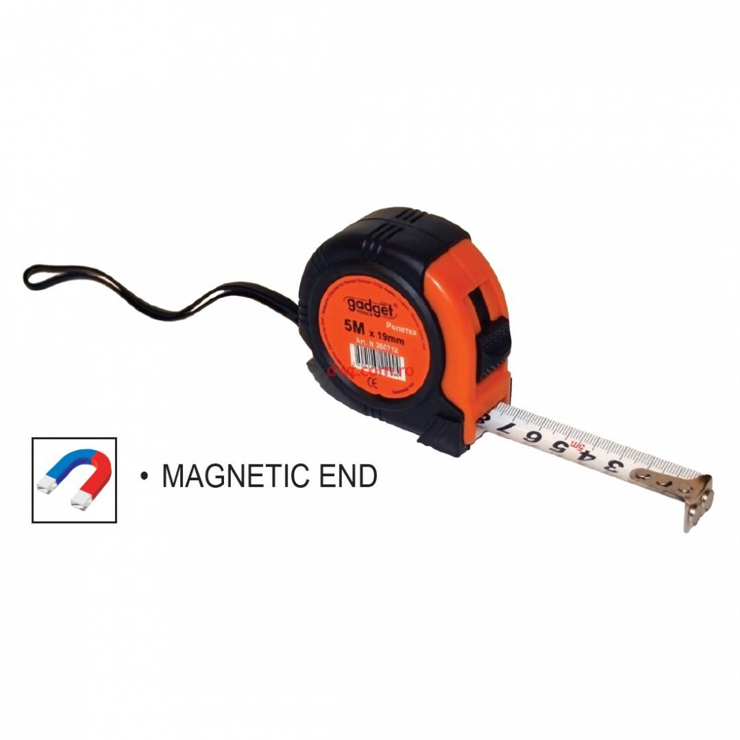 Gadget Bulgaria Caracteristici tehnice: Cod produs: 260714 Imbracata in cauciuc pentru o mai buna absorbtie a socurilor Sistem de blocare Cap magnetic Lungime 7,5 m Latime banda 25 mm |