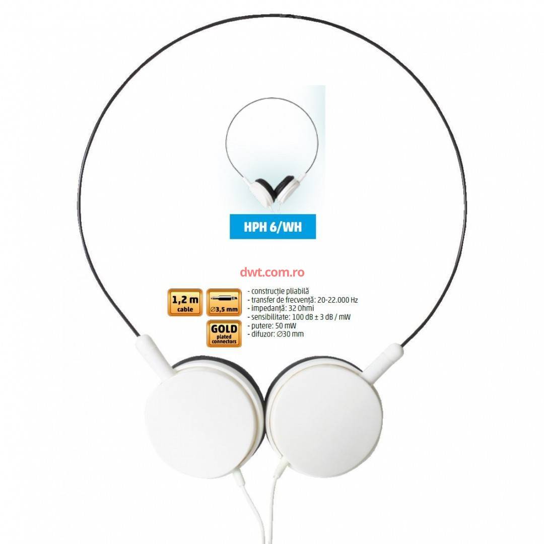 Comanda instant - SAL HPH 6/WH Casti audio cu banda Sal HPH 6/WH, alb, difuzoare rotative