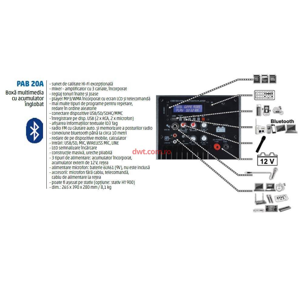 SAL PAB 20A Boxa portabila activa Sal PAB 20A, bluetooth, FM, USB/SD/SDHC/MMC, HI-FI, Karaoke |