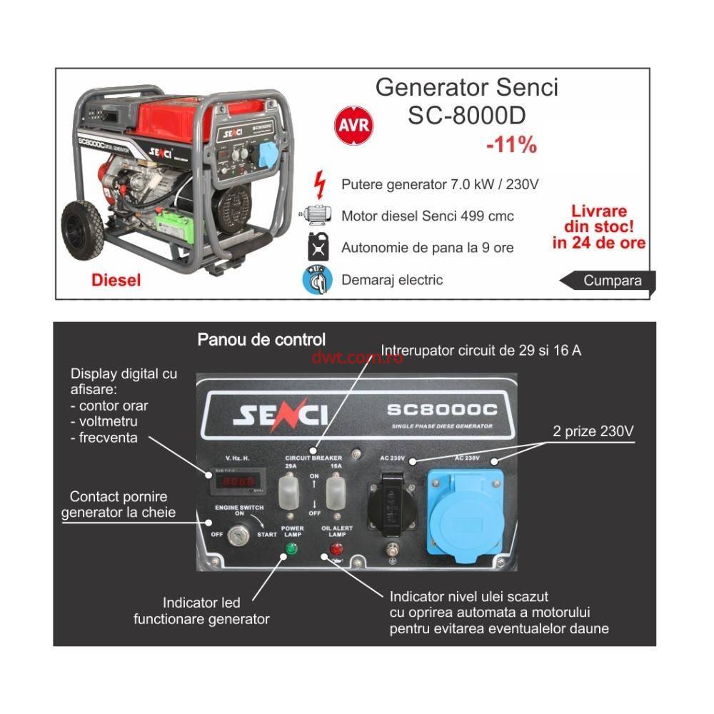 Comanda instant - SENCI SC-8000DE Generator de curent Senci SC-8000DE, 7000W, 230V, diesel, AVR, demaraj electric