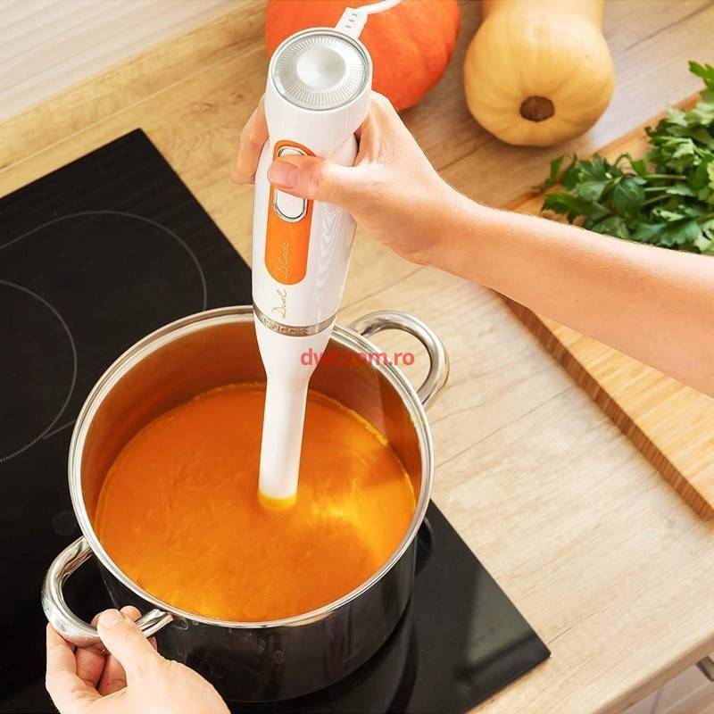Pregătiți rapid și ușor sosuri, supe și piureuri. Puterea de 800 W garantează rezultate decente și excelente la amestecare. Mânerul cu design ergonomic se potrivește perfect fiecărei mâini. Datorită comutatorului Turbo, puteți obține performanțe maxime într-un timp scurt, de ex. Pentru zdrobirea gheții.