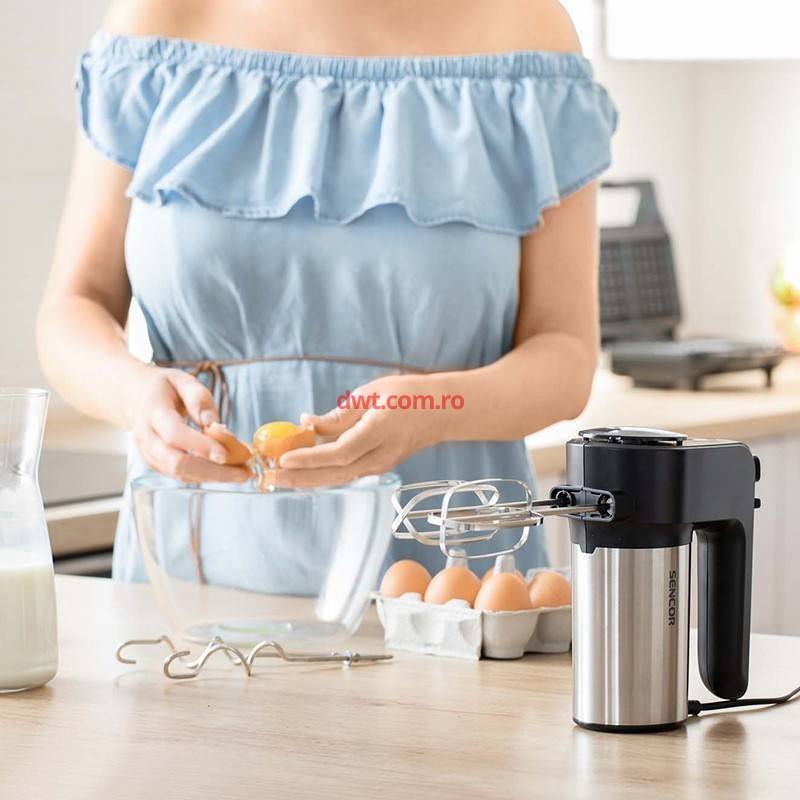 Sencor a echipat dispozitivul cu un motor fiabil de 400 W, care este ușor și silentios. Datorită acestui lucru, puteți alege între cinci trepte de viteză și chiar și funcția TURBO. Amestecă eficient ingredientele mai dense, dar delicate într-o clipă, de exemplu, este potrivit pentru prepararea diverselor aluat de prăjitură, tot felul de creme, albușuri, frișcă sau chiar terci.