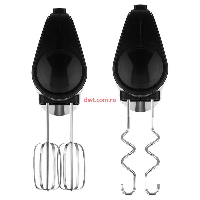 1 pereche de tije de amestec din otel inoxidabil, un tel ideal pentru oua si creme si 1 pereche de brate de framantat. Sunt usor de intretinut si pot fi spalate in masina de spalat vase.
