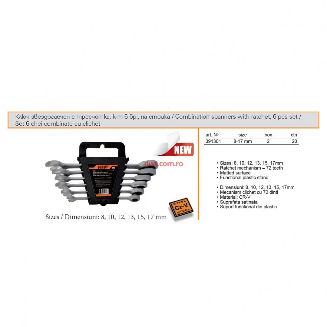 | Comanda instant - Set 6 chei combinate cu clichet, Gadget 391301, Crom Vanadium, 8-17 mm