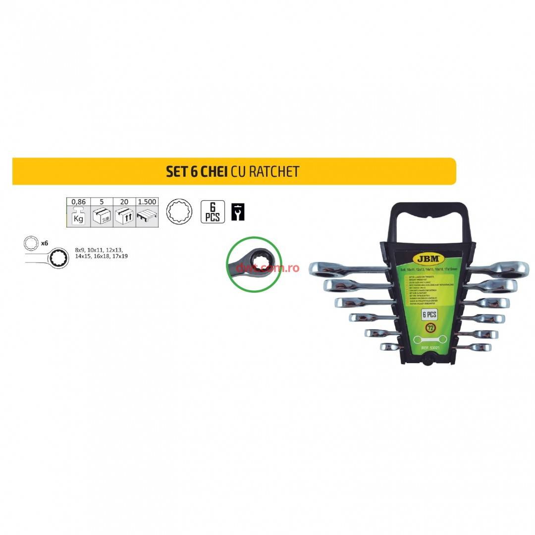 Comanda instant - Set 6 chei inelare cu clichet JBM 53021, Cr-V, 8-19 mm