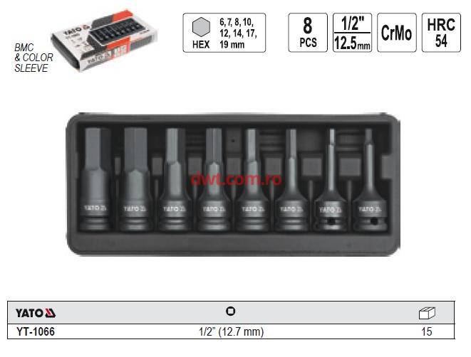 Set 8 chei tubulare hexagonale de impact 1/2'', YATO YT-1066 |