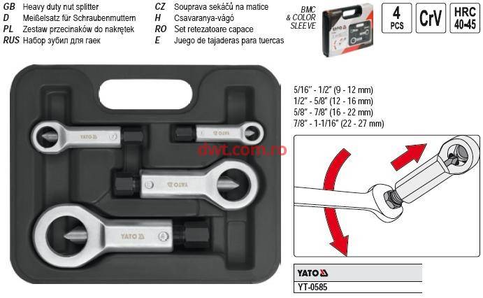 Set dispozitive pentru spart piulite 4 buc., CrV, YATO, YT-0585 |