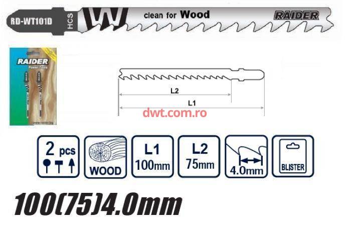 Raider Bulgaria Caracteristici tehnice: Set 2 bucati pentru lemn Lungime maxima 100 mm L1 Lungime utila 75 mm L2 Distanta intre dinti 4 mm