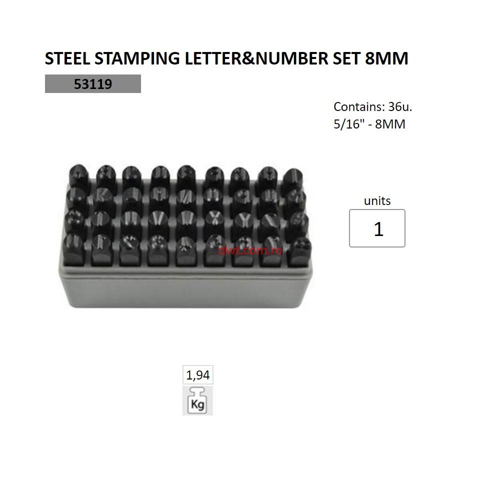 Set poansoane litere si cifre JBM JB-53119, 36 piese, 8 mm |