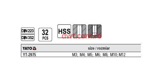 Comanda instant - Set tarozi si filiere, HSS, 32 piese, M3-M12, YT-2975