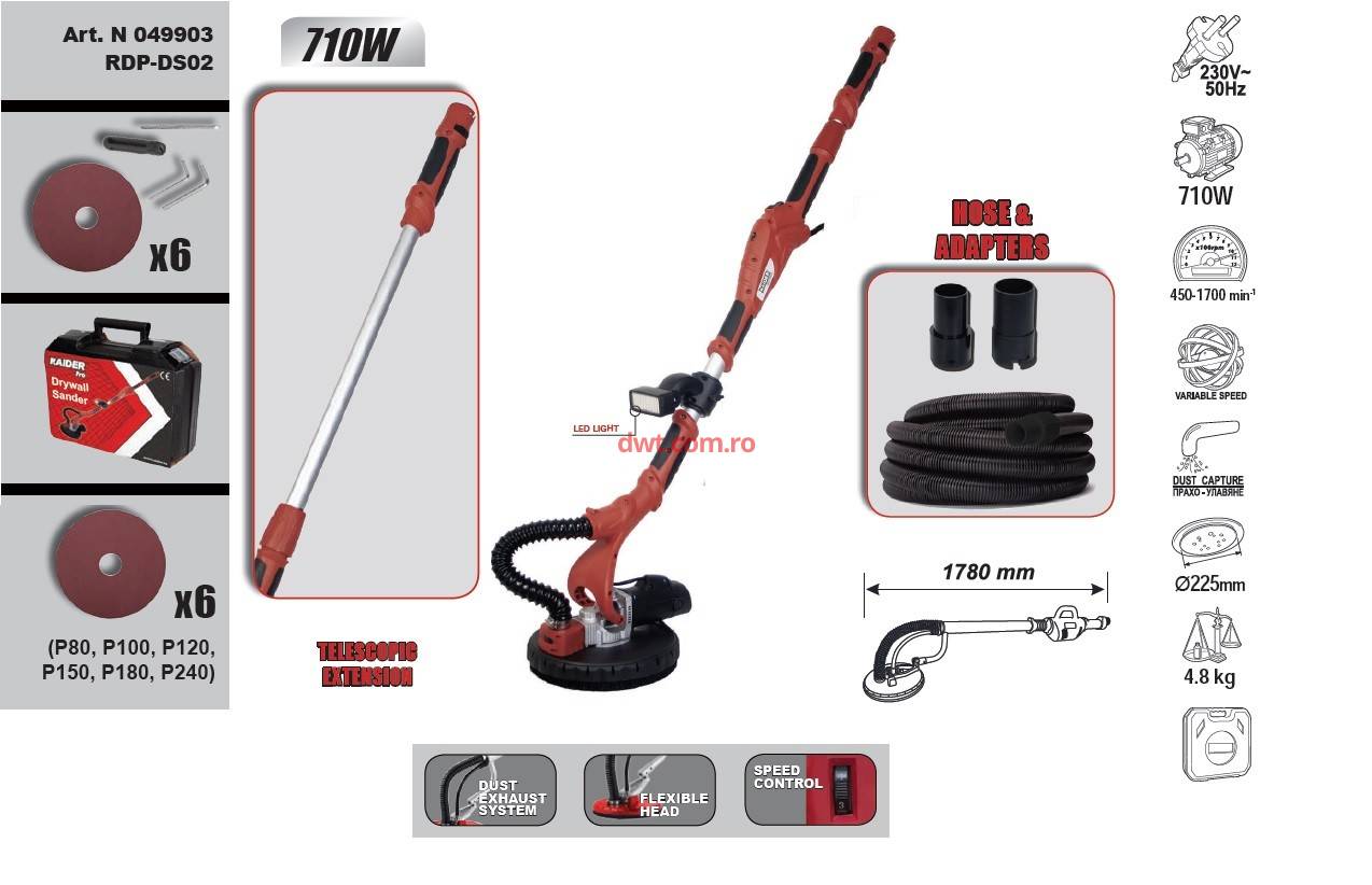 Slefuitor pereti si plafoane, telescopic 710W, lampa led, Raider RDP-DS02 |