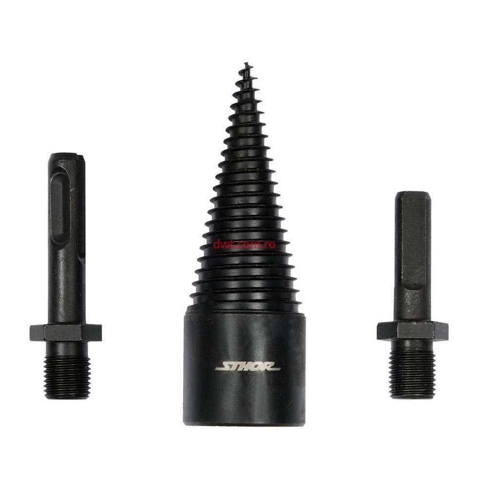Comanda instant - Sthor 22590 Burghiu pentru despicarea lemnului, diametru 32 mm, cu 2 adaptoare