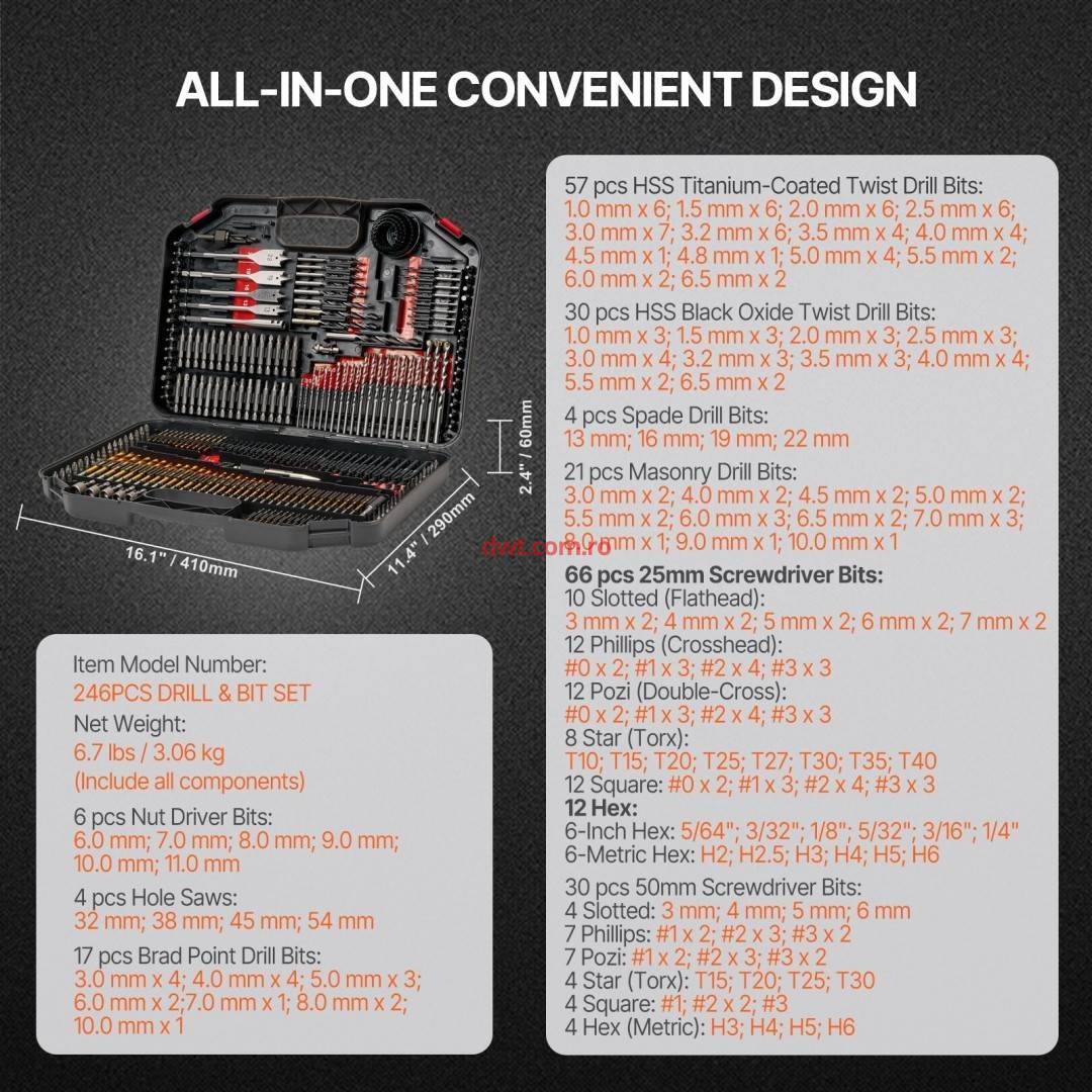 Set de gaurit integrat: Acest set de 246 de bucati si