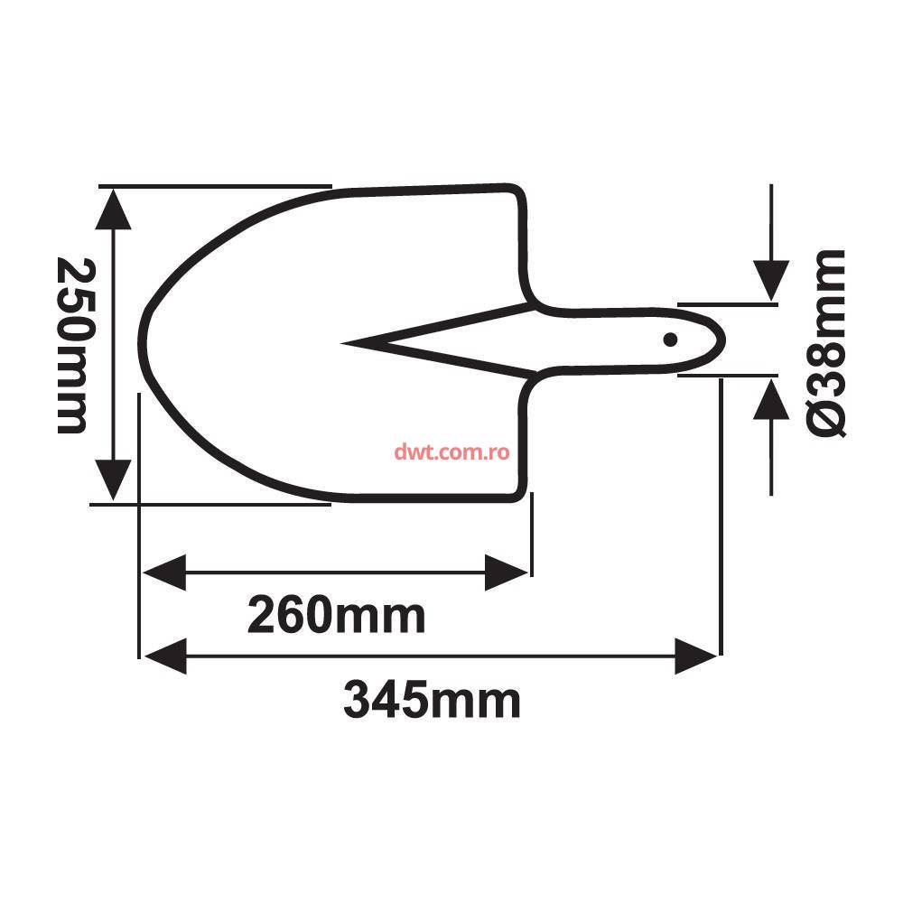 Acoperita cu pulbere de aluminiu pentru o durata lunga de viata Culoare neagra Marcaj cu logo Dimensiuni lopata: 250mm x 260mm Lungime cu suport maner 345mm Grosime 1.7 mm Greutate 900g Diametru coada 38mm |
