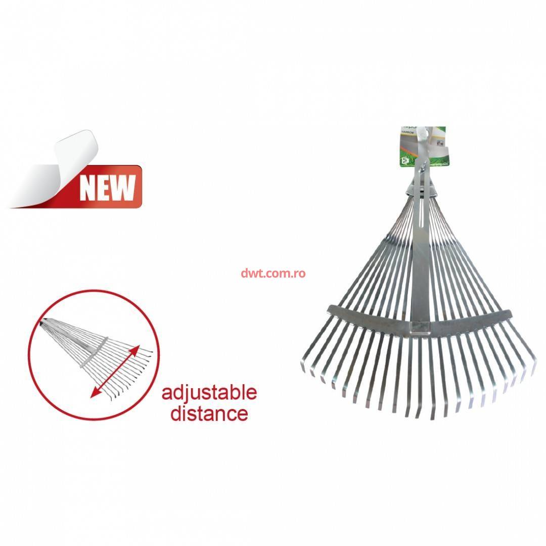 TopGarden Bulgaria Caracteristici tehnice: Cod produs: 380515 Pentru greblat frunze si deseuri de gradina Confectionata din otel galvanizat Forma lama evantai Dinti flexibili si rezistenti Nr dinti 21 Grosime dinti 0.9mm Latime de lucru reglabila 40-50cm Culoare gri argintiu Greutate 500g Diametru maner 28mm |