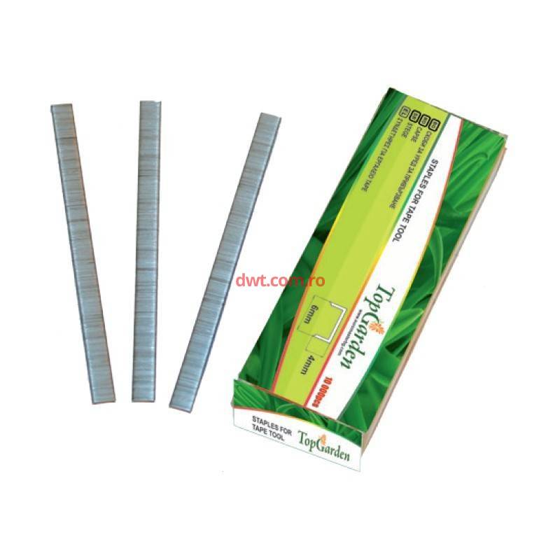 TopGarden Bulgaria Caracteristici tehnice: Cod produs: 389910 Se foloseste cu aparatul pentru legat plante cu banda si capse 20/120, TopGarden 389908 Utilizate pentru pomi fructiferi, vita de vie, pomi si arbusti ornamentali Confectionate din metal Latime 6 mm Inaltime 4 mm Setul contine 10.000 capse |