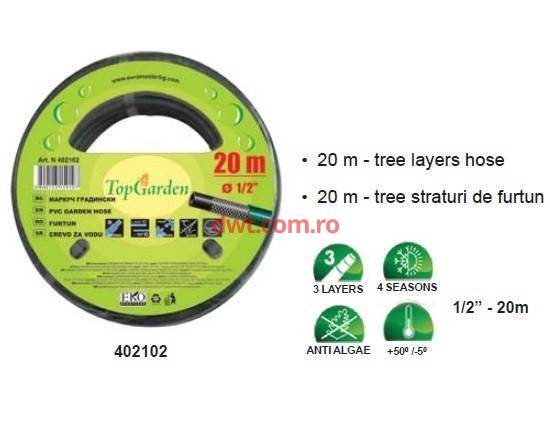 Comanda instant - TOP GARDEN 402102 Furtun de gradina cu 3 insertii 20m, 1/2", TopGarden