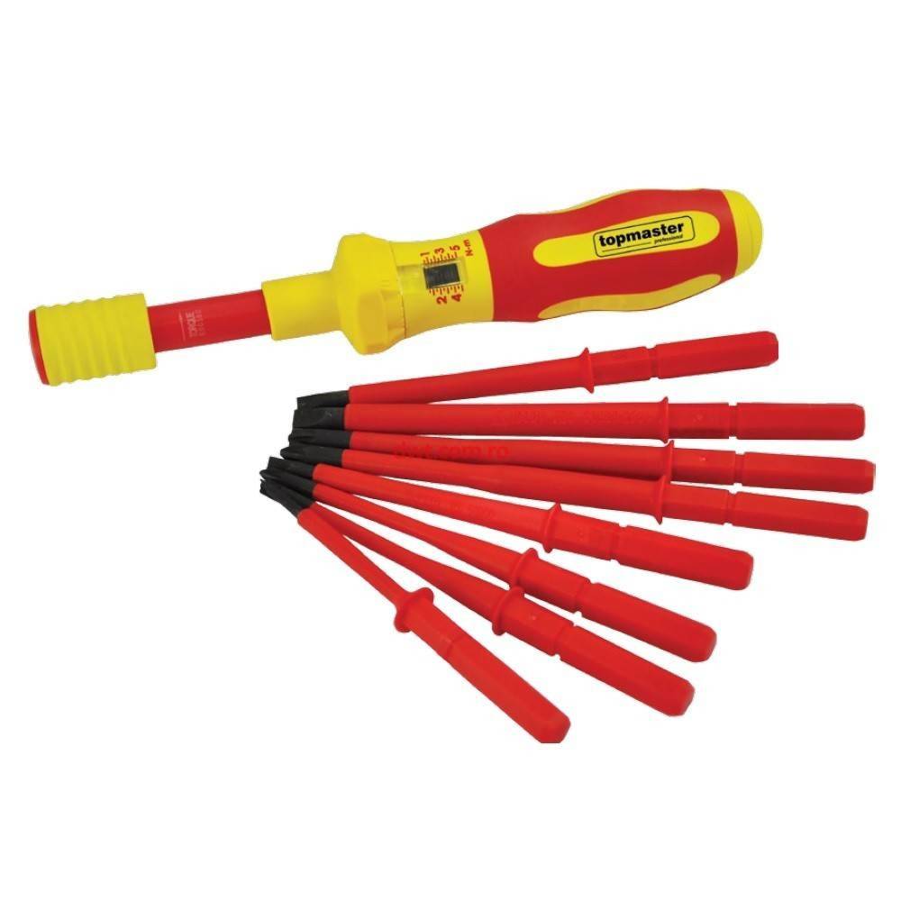 topmaster 220102 Trusa surubelnite electricieni cu maner interschimbabil Topmaster 220102, magnetice, 1000V |