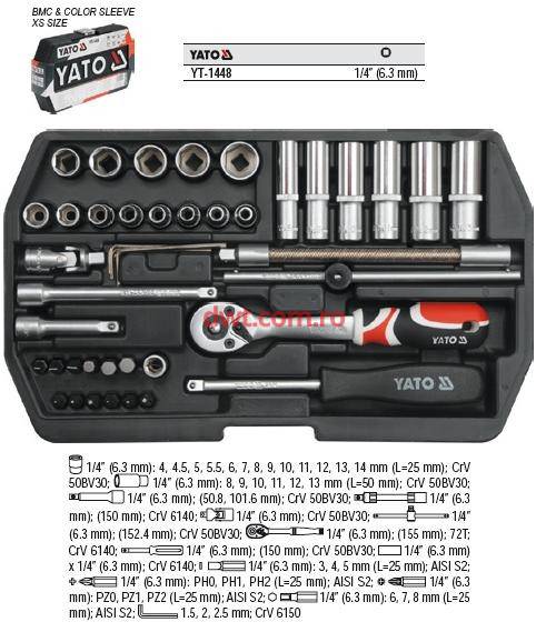 Trusa tubulare profesionale de calitate marca YATO, recomandata pentru ateliere de lucru. Cheile și prizele de acționare, sunt realizate din material durabil crom vanadiu otel CrV 50BV30. Conținutul pachetului
