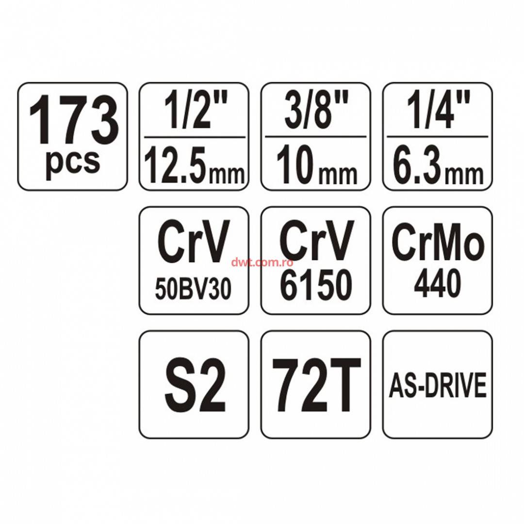 | Comanda instant - Trusa chei tubulare si biti, cu antrenor, Yato YT-38931, 173buc., Cr-V