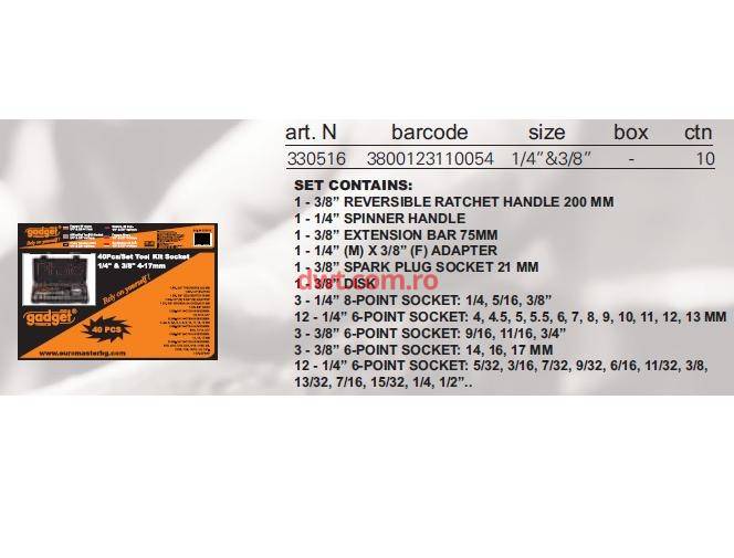 Trusa tubulare 40 piese 1/4" si 3/8", GADGET 330516 |