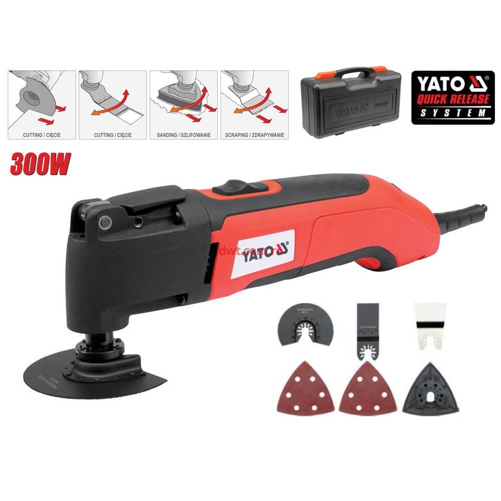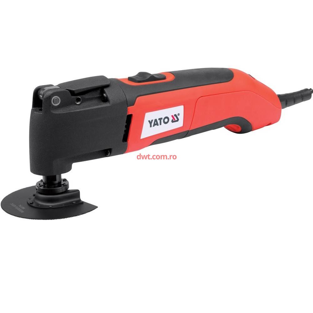 Durabilitate, perfectiune in executie, otel de cea mai buna calitate sunt citeva din caracteristicile principale ale marcii. YATO poate fi utilizat in 3 domenii: service reparatii auto, constructii si gradina. Sculele pneumatice si cele de mina sunt folosite cu succes de specialisti din diferite ramuri industriale. Caracteristici tehnice: Unealta multifunctionala oscilanta cu o putere de 300 W de la Yato ce permite indepartarea chitului,inlocuirea placilor sparte. Permite reglarea fina a oscilatiilor pentru adaptarea lucrului la tipul de material. Turatie in gol : 15000-22000 RPM Putere: 300 W Tensiune alimentare: 230 V Frecventa: 50 Hz Tip: hobby Setul include: -Panza de fierastrau segmentata de 88 mm -Suport pentru hartie abraziva 80x86 mm -Hartie abraziva -Panza cu intrare directa in material 34mm -Razuitor: 50 mm -Valiza de plastic Fabricat in: Polonia