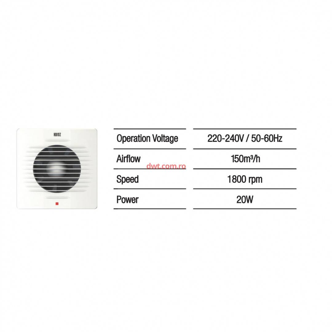 Ventilator axial de perete, Horoz-150, debit 150 m3/h, diametru 150 mm, 20 W |