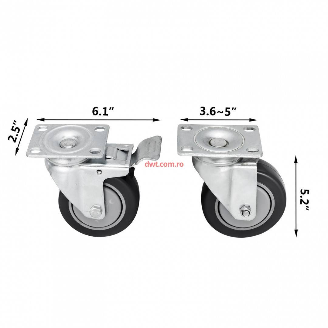 Vevor 16PCS4CTX1-3JAZJLV0 Set 16 roti pivotante cu blocare pentru carucioare, 4 inch, max 130 kg / roata, PU si Otel |