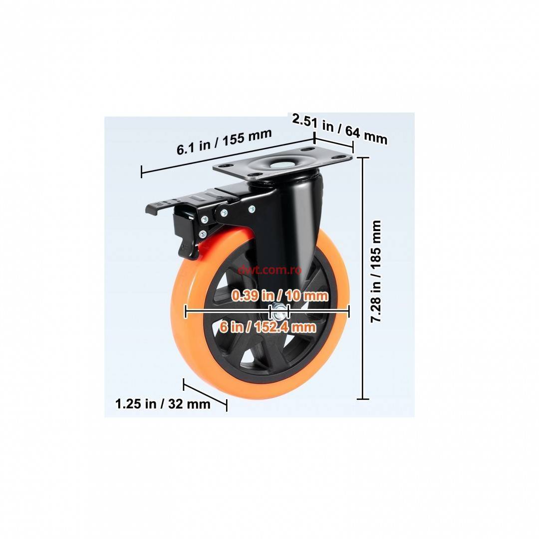 Diametrul rotii 6 in/152,4 mm