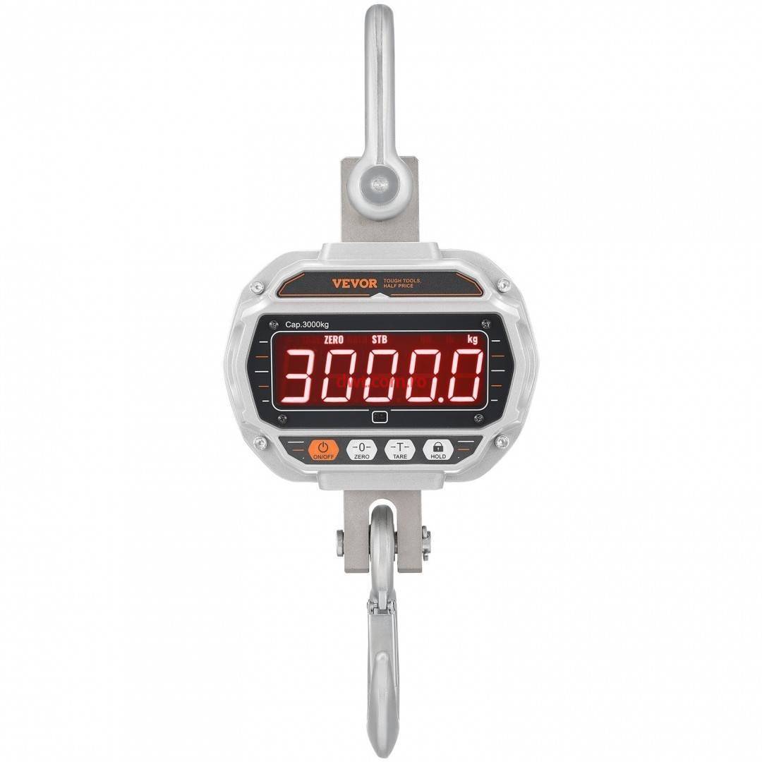 Cantar electronic cu carlig Vevor 3000 kg, Afisaj LED,
