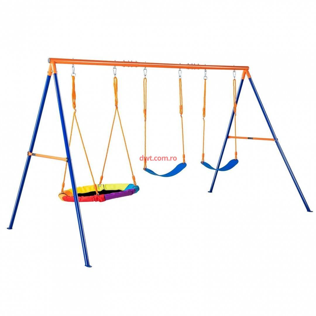 Leagan pentru copii, 3 in 1, cadru otel A, max 272 kg, demontabil, 1651H x 3048 x 1829 mm Capacitate mare de greutate si constructie robusta: Acest