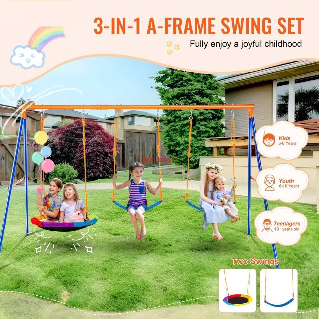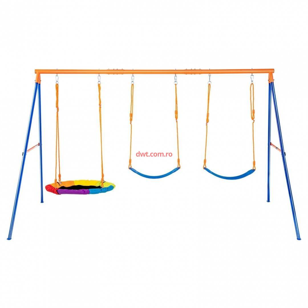 set de leagan cu cadru in A poate suporta pana la 272 de kilograme, avand o