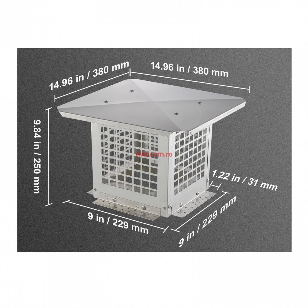 Comanda instant - VivaTechnix BXGFXPDYDGYSKQNL5V0 Capac terminal patrat pentru cos de fum, Vivatechnix Inox, 229 x 229 mm