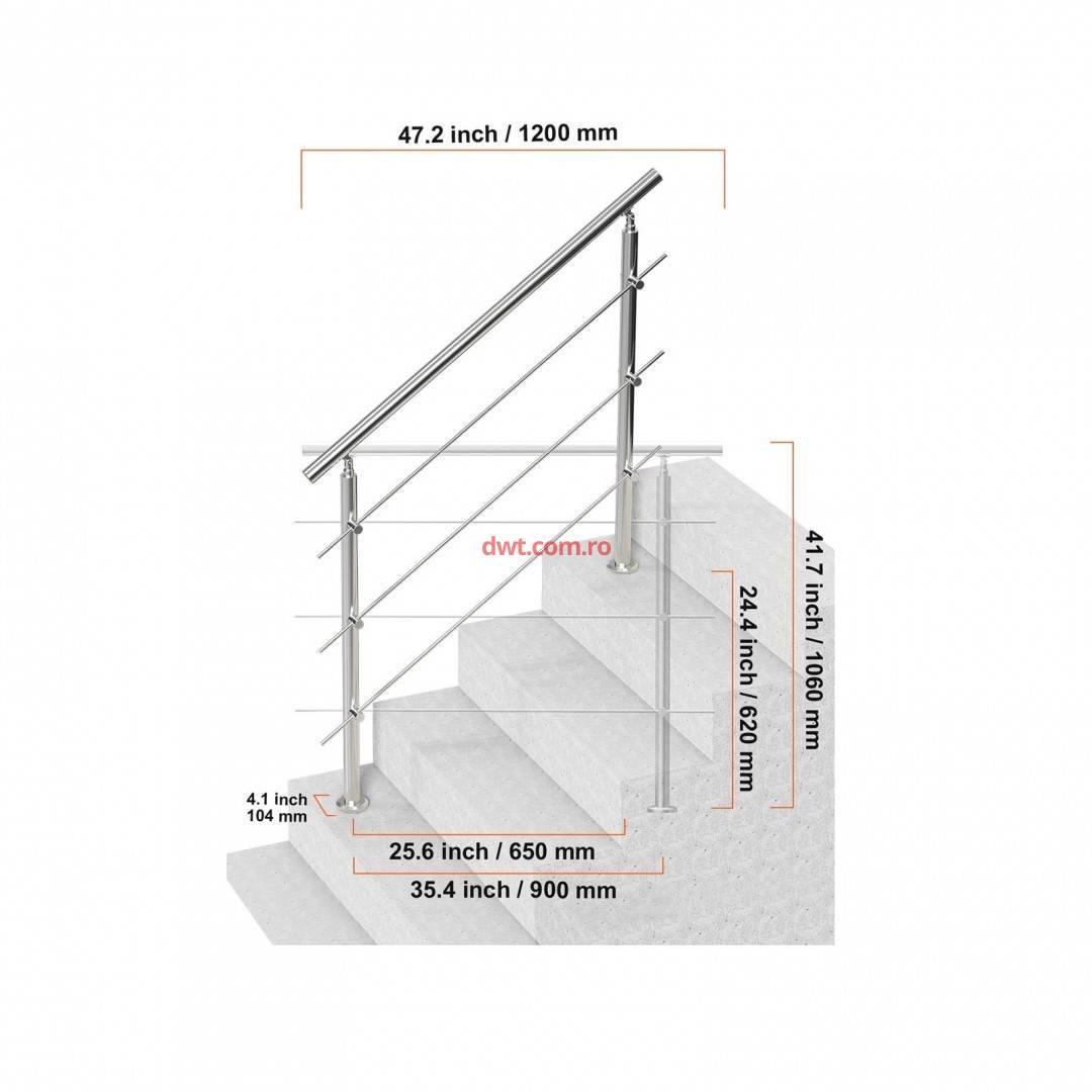 Comanda instant - VivaTechnix BXGSLZFS120CCRS3EV0 Balustrada inox, 4-5 trepte Vivatechnix, Inaltime 1060mm, lungime 1200mm, pozitii reglabile, 3 bare transversale