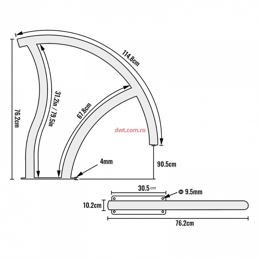 12"L x 4"W/ 30,5 x 10,2 cm. Placa de baza incorporata de 4 mm ofera