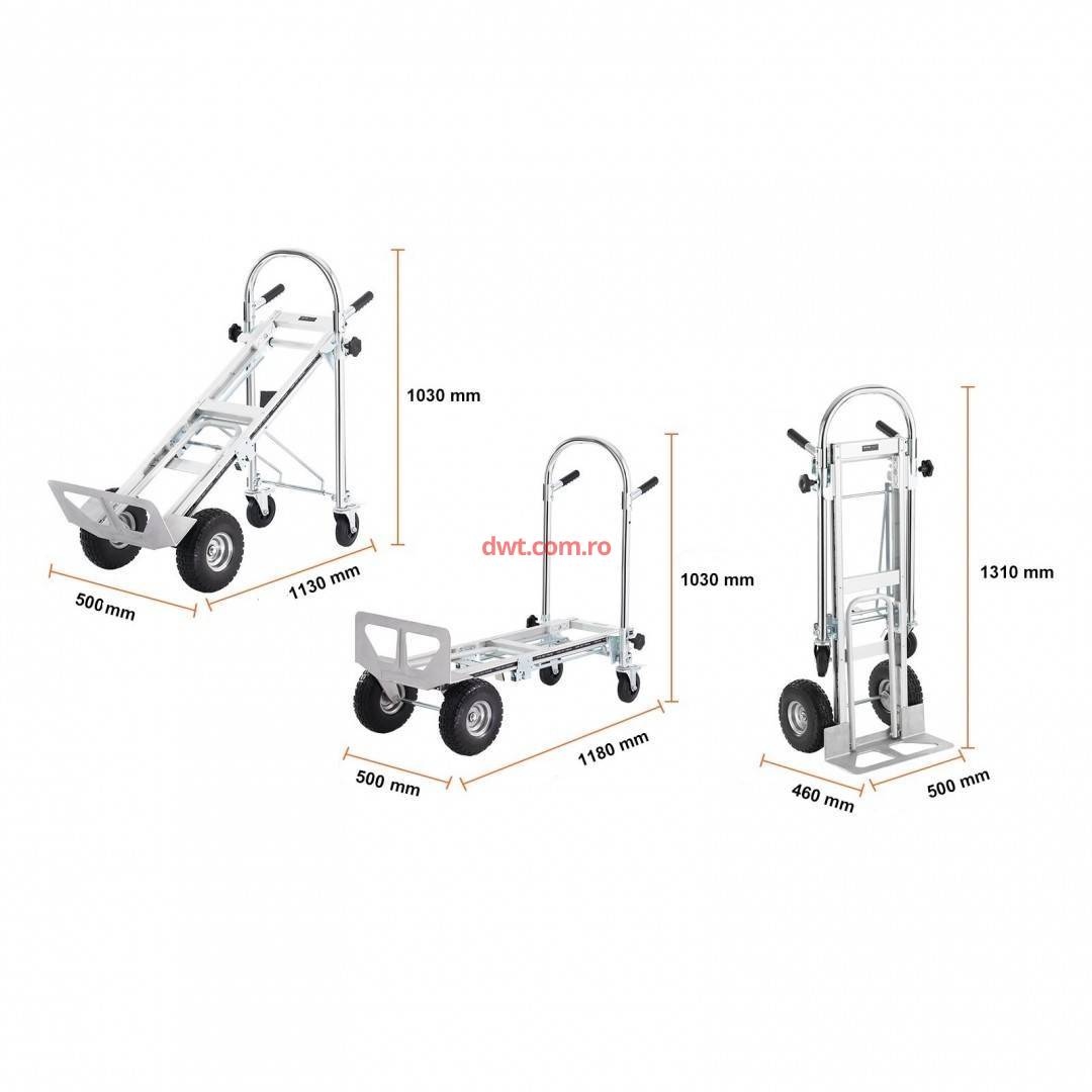 | Comanda instant - VivaTechnix DGNSTHC1000B0NYPXV0 Carucior marfa 4 in 1, Capacitate max 454 kg, Greutate 18.3 Kg, Pliabil, Aluminiu