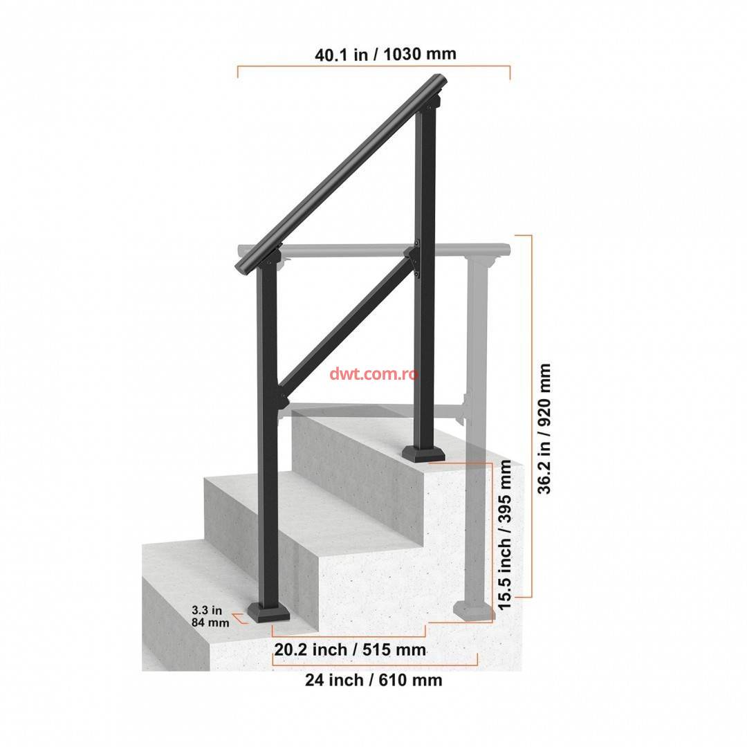 VivaTechnix FGDHGZLSLZFS730X7V0 Set 2 balustrade otel, 1-2 trepte Vivatechnix, Dimensiune 1030 x 84 x 920 mm, Unghi reglabil 0° - 40°, Negru |