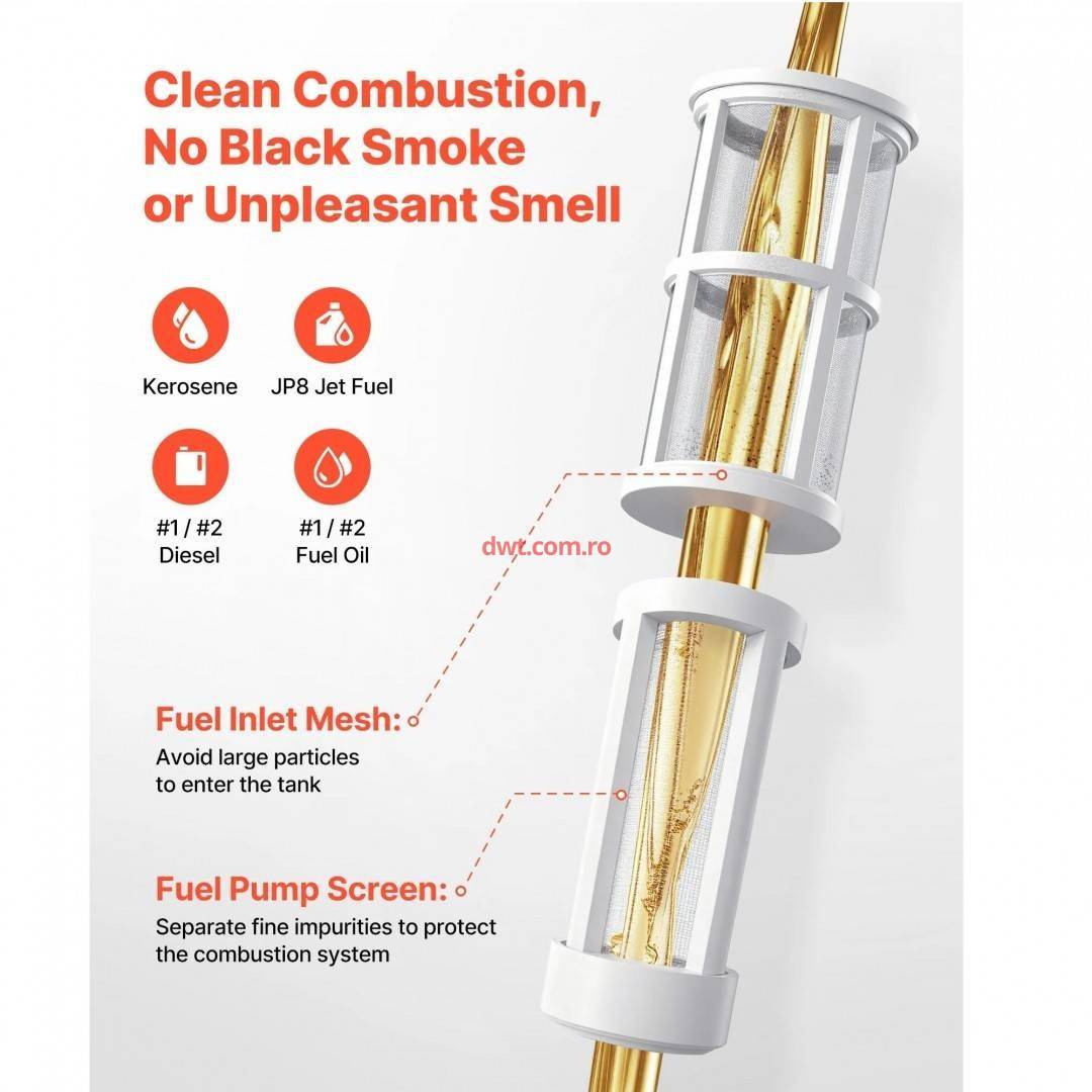 Compatibil cu kerosen si motorina, reduce fumul, mirosul neplacut si