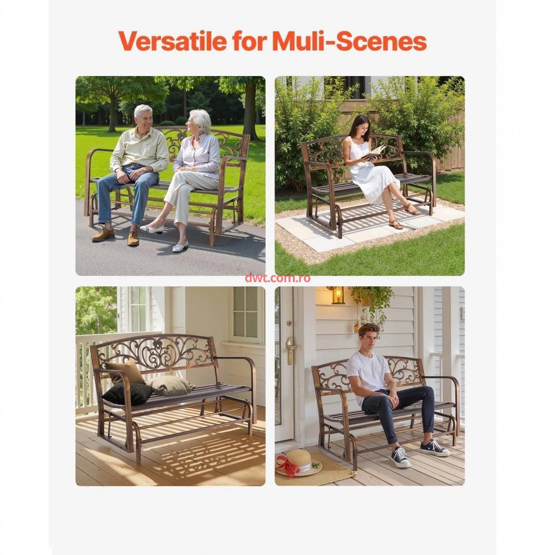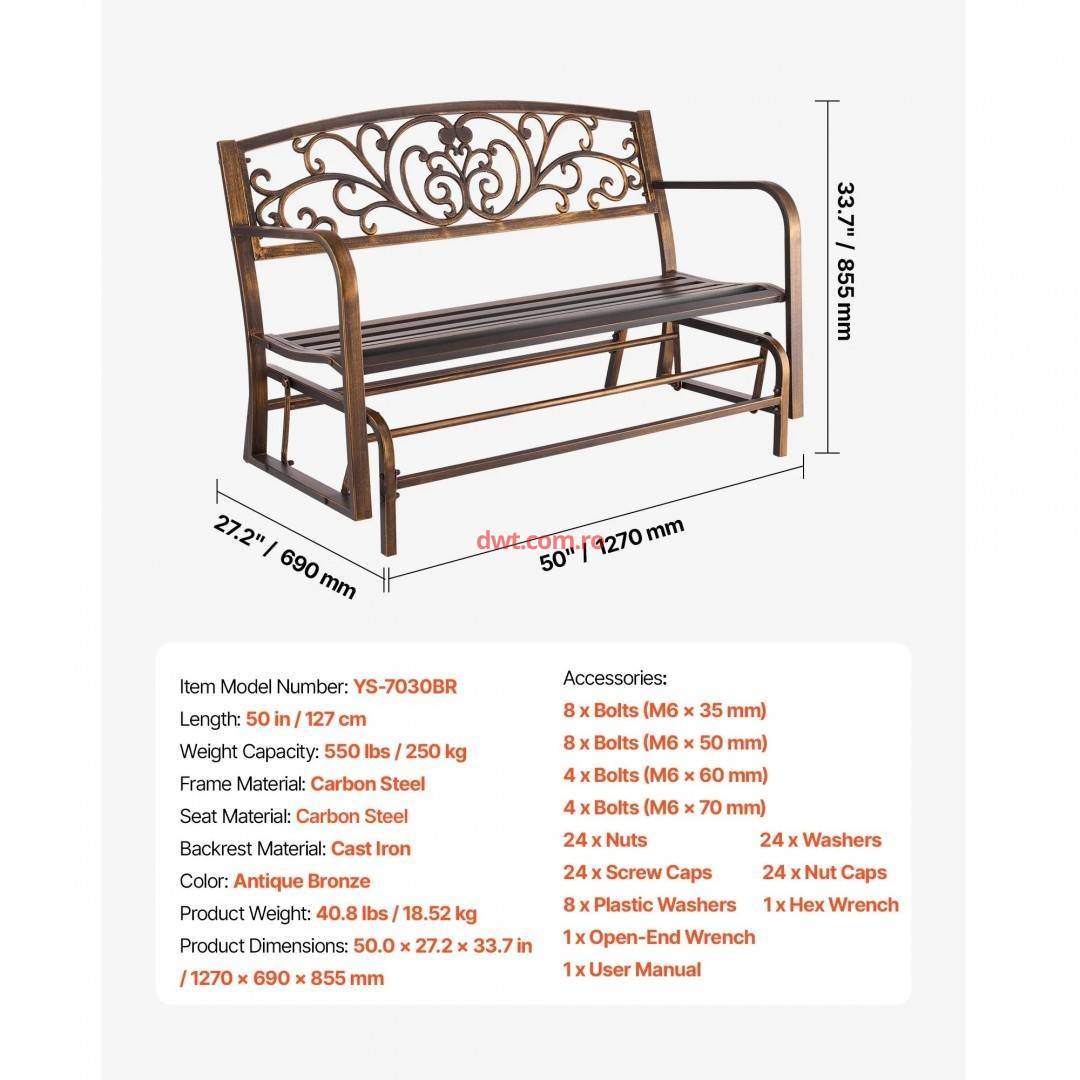 Comanda instant - VivaTechnix GYZYJSGTSHWZTBF7Y001V0 Banca cu cadru metalic otel, spatar fonta, Bronz antic, Lungime 127 cm, max 250 kg, 2-3 persoane