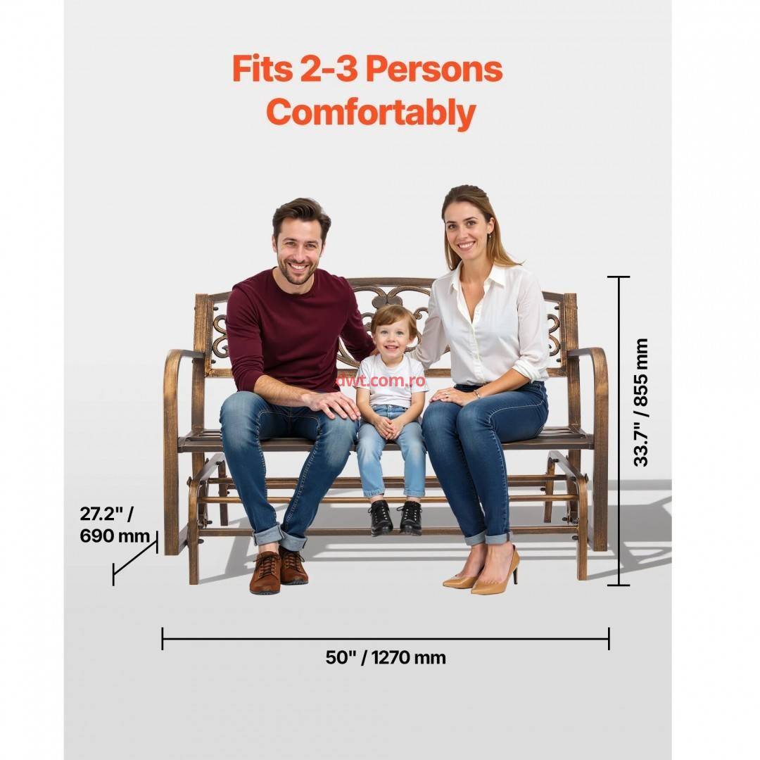de pana la 227 kg, aceasta banca de terasa ofera un loc confortabil pentru 2-3