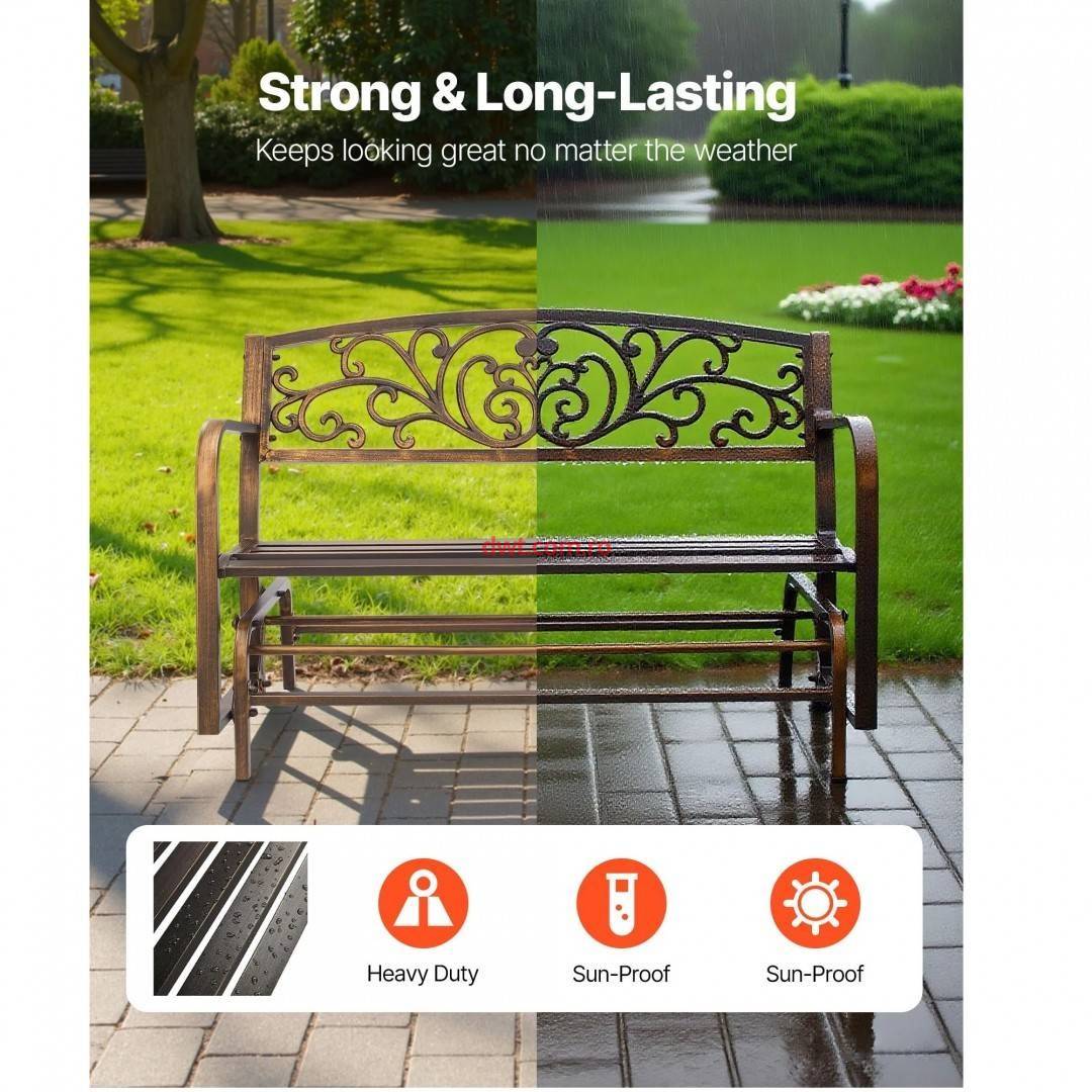 VivaTechnix GYZYJSGTSHWZTBF7Y001V0 Banca cu cadru metalic otel, spatar fonta, Bronz antic, Lungime 127 cm, max 250 kg, 2-3 persoane |