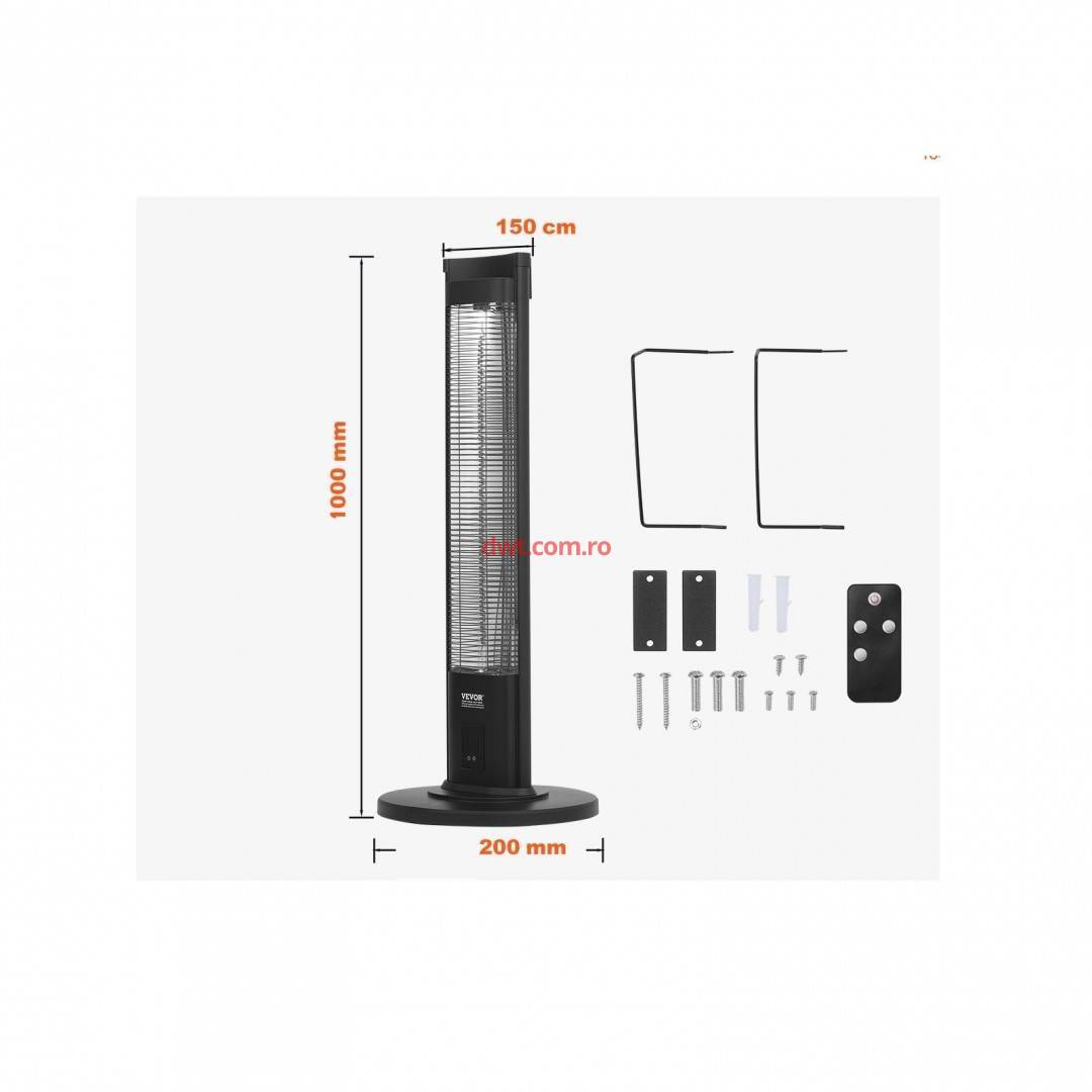 Comanda instant - VivaTechnix HWXJRQ2KWTXTOR7SGV2 Incalzitor cu infrarosu 2000W, Telecomanda, 3 setari de temperatura, Temporizator, IP34, Aluminiu, 200x150x1000 mm